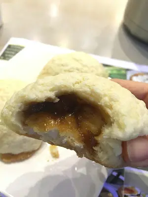 個包新鮮熱辣的, 外皮脆脆地, 裡面又好軟熟, 口感一流, 叉燒汁料是香甜蜜汁味, 可是叉燒餡部分不算很多。