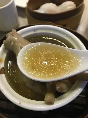 湯有一點點油, 不過是可以接受的, 煲雞或雞腳的湯難免比較多油。湯有濃濃的藥材味, 帶點微苦, 但感覺十分補身, 雞腳都可以吃掉, 只是不算煲得太腍。