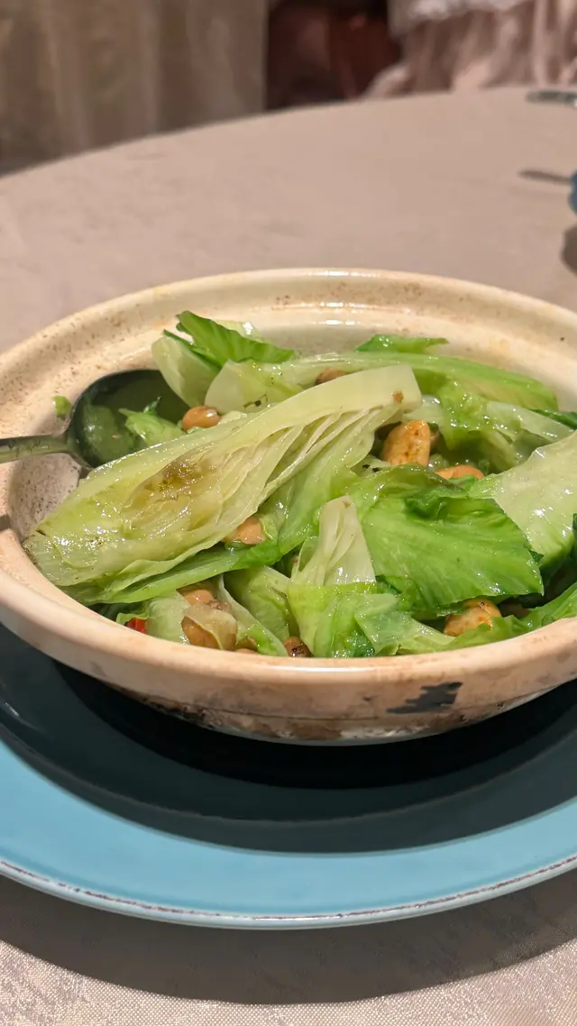 甘樹子味道好似鹹橄欖,唐生菜本身味清,所以配埋真係好夾,砂鍋熱住上,香味好出
