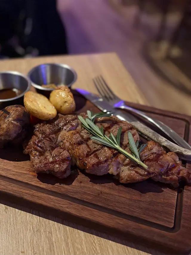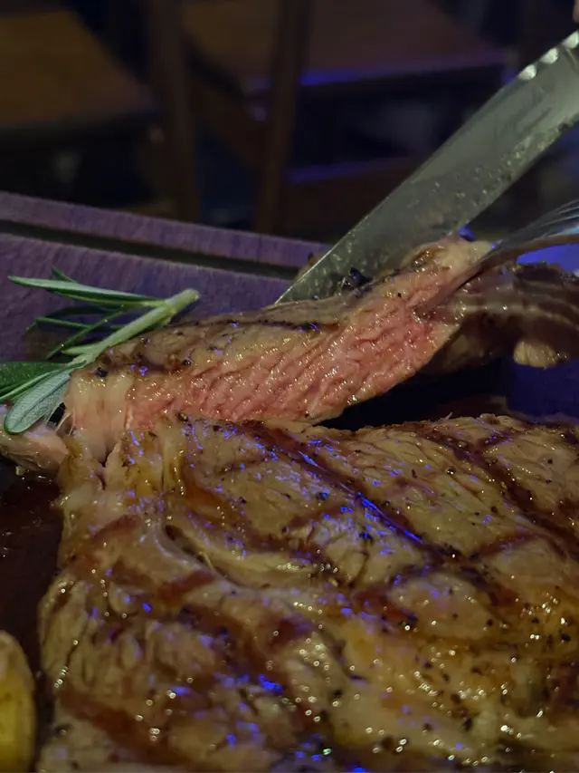 燒美國頂級肉眼牛扒:原本套餐已經包咗10安士嘅阿根廷安格斯肉眼牛扒,加$138upgrade做12安士冇失望。肉味濃郁,肉質軟嫩細滑,切開仲係粉紅色,大大塊兩個人分享啱啱好。一旁嘅燒蘑菇多汁,透出火燒嘅煙熏香氣。