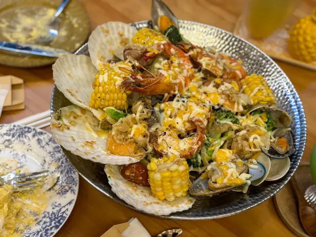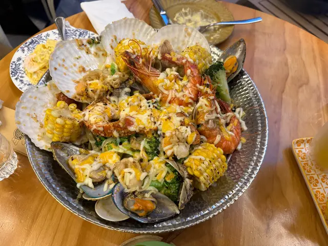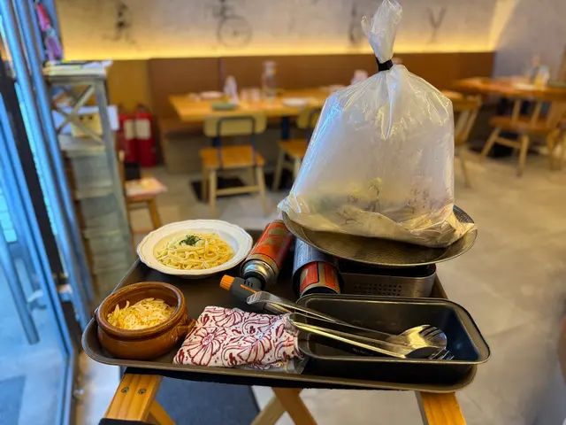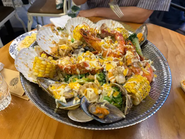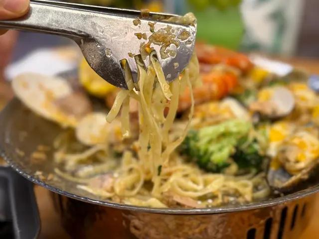 呢個真係超有誠意👍🏻。首先有侍應端上枱,然後即場在食客前「煮意粉🍝」和將海鮮袋裏的海鮮倒進意粉裏,儀式感十足!海鮮袋裏有蝦、蜆、青口、扇貝等,勁豐富!