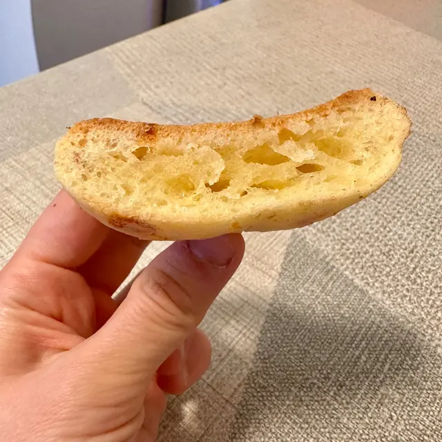 麵包加熱至溫熱狀態,食落香脆而沒有拉扯感