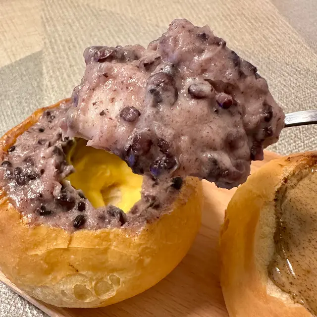 紫米餡料豐富充足;同樣以電飯煲加熱