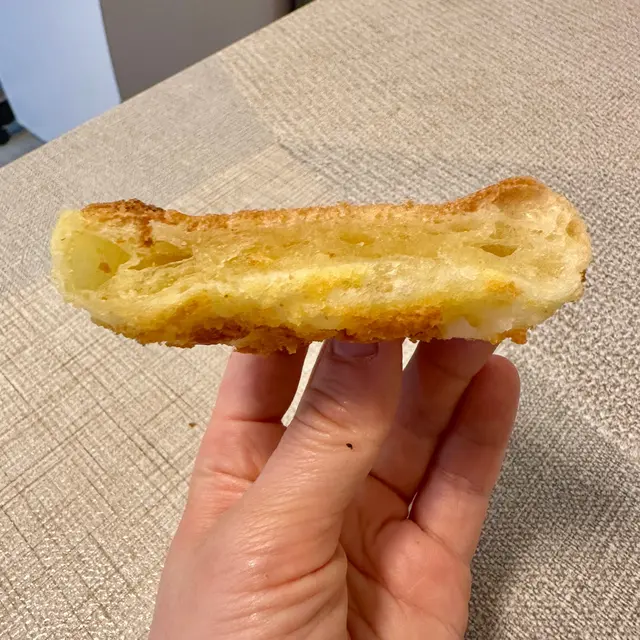 食落有同樣感覺,外皮偏乾偏硬而且受熱唔均勻;內餡有淡淡芝士味道,調味不重,煙韌感不錯