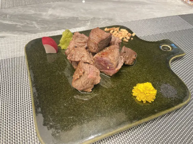 厚切見粉紅心,外層帶椒鹽脆香,油分控制得好,配山葵與蒜片兩種走向,既可清新也可重口。以午市價來說,肉質交足功課。