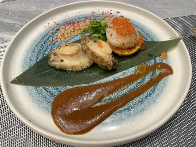 帶子伴少量三文魚子提升鮮味。鮑魚為本次最喜愛的食物之一,爽口彈牙帶一點點咸味,調味適中,色香味都剛剛好的感覺。