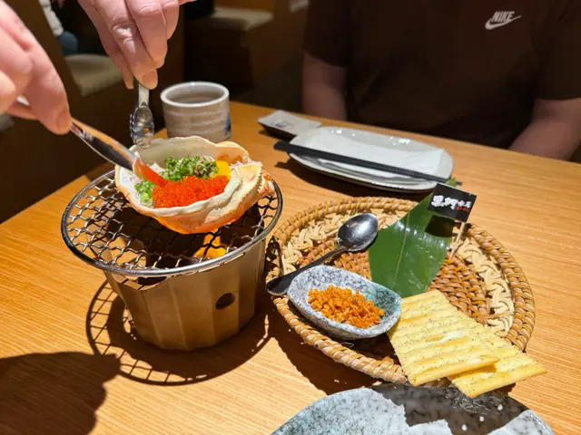 跟住就到必食嘅「蟹味噌甲羅燒」!店員會喺你面前即場用火槍燒,睇住佢吱吱聲,聞住個香味已經流口水。個蟹蓋裡面裝滿咗蟹肉、蟹膏同味噌,撈勻一齊燒,熱辣辣,香噴噴。食嘅時候,通常會叫佢哋嘅特色餅乾或者青瓜條點嚟食。一啖放入口,蟹膏嘅濃郁香味即刻充滿成個口腔,味道濃厚得嚟又唔會太鹹,夾雜住啖啖蟹肉,口感豐富到不得了,真係邪惡到極,但係好食到停唔到口!