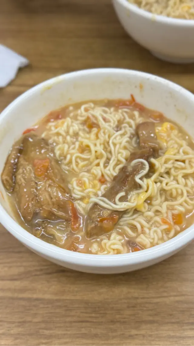 蕃茄湯底同以前差唔多,但好似淡咗啲,微酸甜味,拌入炒蛋後口感都好滑,頂層再鋪上一片芝士,不過熱力就未足以令佢融化😅。即食麵係偏硬身,但蕃茄汁又唔多,食落有啲哽胃🙈