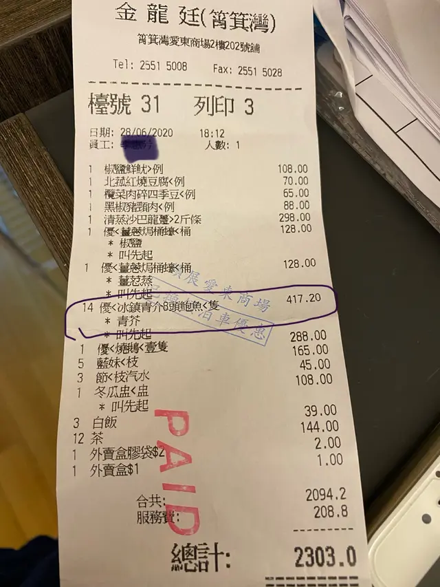 搵笨,無下次 咪當我傻等级12020-06-282K 浏览 关注 親友兩星期前光顧,大讚冰鎮鮑魚好食,今晚長途跋涉黎試試,點知價值$417嘅冰鎮鮑魚無冰鎮,整左個不知明嘅青介鮑魚,賣相同餐牌差勁遠,通知職員了解,職員聲稱不嬲都係咁整,不嬲都係無冰鎮,真奇怪,親友早兩個星期前先食完,我地又係指住餐牌幅相黎點菜,呢間野整錯菜式唔認,唔更換,老一輩嘅親友太好人照食,啖氣真係落唔到,紅色衫嘅女侍應仲成晚態度惡劣,大佬!你地錯呀!對唔住都唔講句,仲要客人硬食,而家咩時勢,咁嘅質素同服務態度,真係要小心!1以上食记乃用户个人意见 , 并不代表OpenRice之观点。1分享搵笨,無下次 金龍廷 https://s.openrice.com/QrLT0Nsiv00检举 救救用心去做的小店 今時今日...點可以甘吖2021-01-21 回应 张贴 评分1味道1环境1服务1卫生1抵食用餐日期2020-06-28用餐途径堂食人均消费$200 (晚餐)