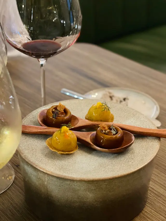 小木匙羹載着嘅雞肝parfait香滑味濃😋