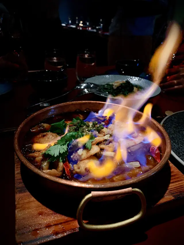 水煮桂花魚是四川直送新鮮辣椒同香料,上枱時仲會加少少冧酒點火很吸精,而且也帶出陣陣麻辣香氣。桂花魚肉好鮮嫩,粉皮煙韌彈牙,辣度適中越食越惹味。