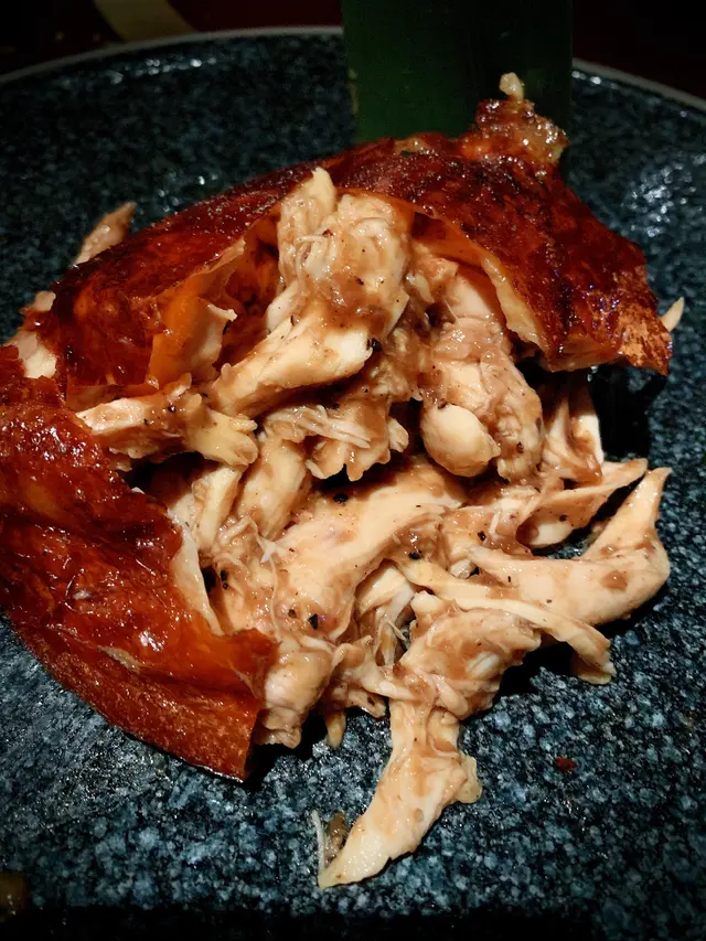 送上枱後打開蓋,飄來陣陣煙燻香氣,整隻雞的骨以拆掉,食落口非常方便,雞皮非常脆薄,雞肉柔嫩美味可口。
