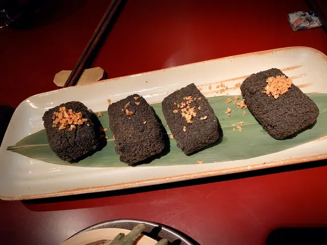 外層沾了竹炭粉再炸至脆口,加上面頭的黃金炸蒜。每件細細件的黑磚豆腐咬落去內裏豆腐軟滑,特別而且有創意的味道。