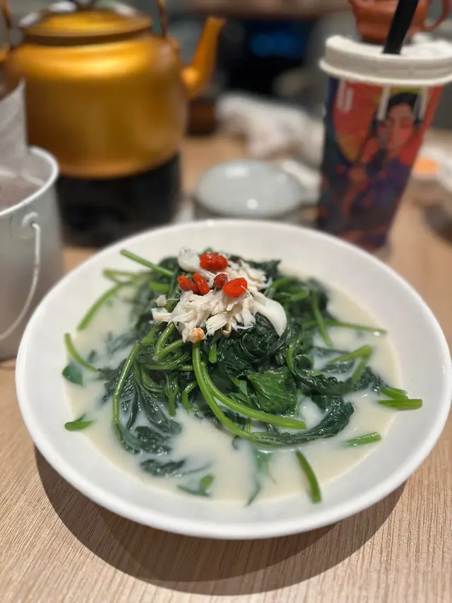 豆漿做湯底濃郁順口,番薯葉苗嫩滑,整體感覺健康又美味。