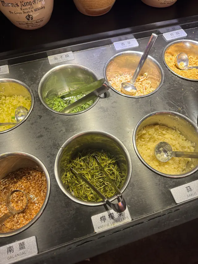 先說湯頭,因為他們標榜是帶東南亞風情的火鍋店,所以有不少如冬蔭功湯的湯底。我們最終選了個2人套餐,裏面有主打健康的芫荽皮蛋湯,上桌後發現用料十足,完全沒味精用心淆製,單是喝湯也喝了好幾碗🤓