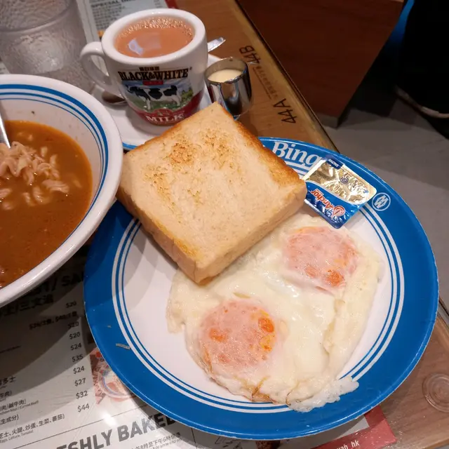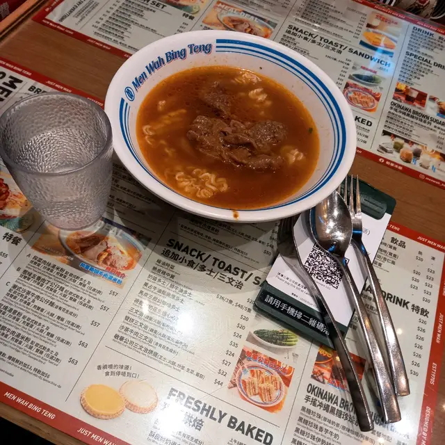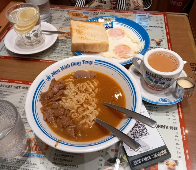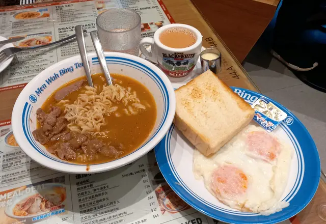 至於肥華今早在此店食到嘅,早餐食物,係一碗牛肉冇味,個湯極咸,麵質尚好嘅沙茶醬牛肉公仔麵,加兩隻凍煎蛋及一塊肥華食咗一半就唔想再食嘅多士,和一杯份量少味道淡啲熱奶茶,呢個劣食早餐就係,揾食肥華在龍年的第一餐👎👎👎👎👎