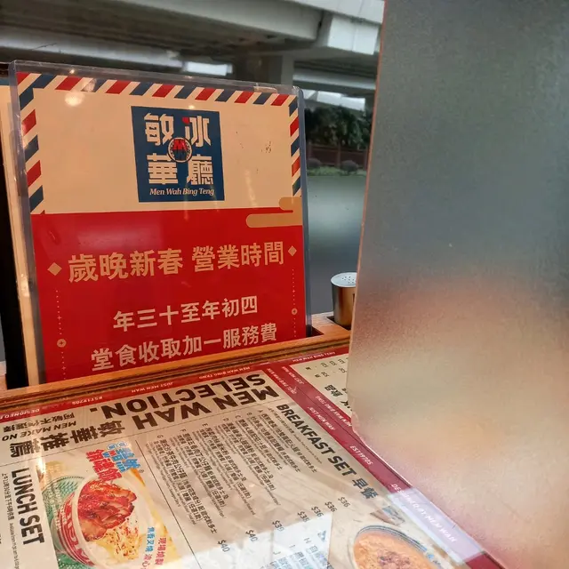 2月10日龍年大年初一,揾食肥華和靚媽,買咗早埸飛,在荷李活睇賀歲片,因利成便就在此店食早餐,早知在新春假期,此店會收加一服務費,肥華唔介意,過年俾多少少消費,但肥華最介意係,此店將一張四人卡座嘅枱面,用膠板隔開兩面,即是強迫一啤啤嘅食客要,擠在一邊卡位進食,嘅然顧客願意俾多啲消費,為何比店唔俾個較好環境給顧客用餐,呢個安排祇有令顧客反感。