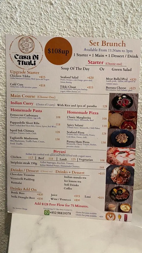 他們的set brunch 由$108起,已包餐湯/沙律,主菜及餐飲/甜品。