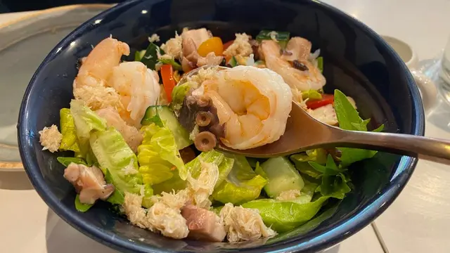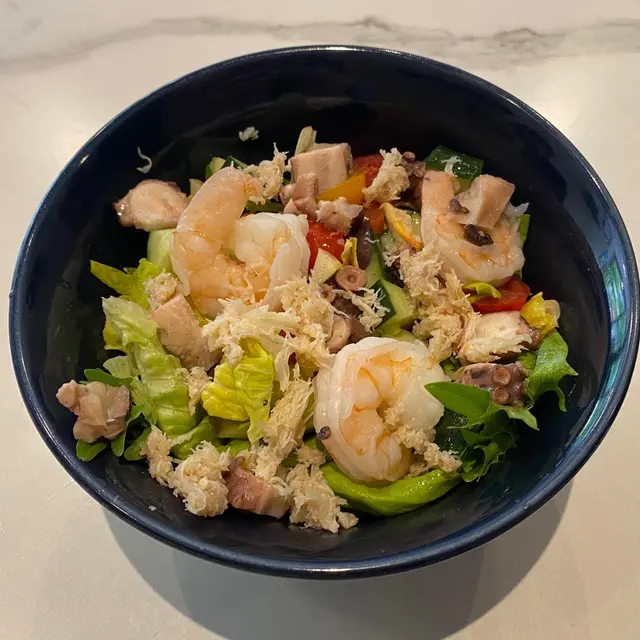 值得加錢點海鮮沙律,因為份量頗大,除左有新鮮沙律菜,更配上熟蝦,章魚粒及蟹肉絲。