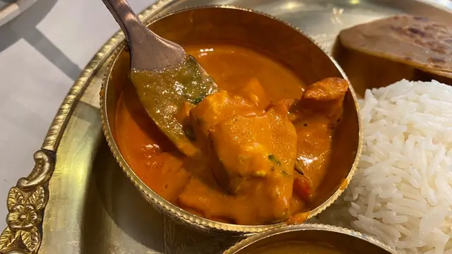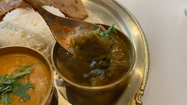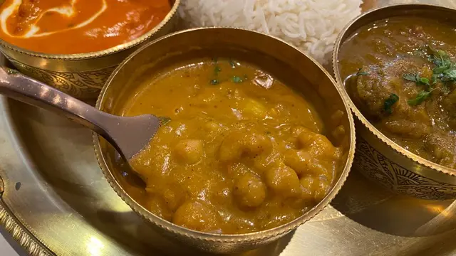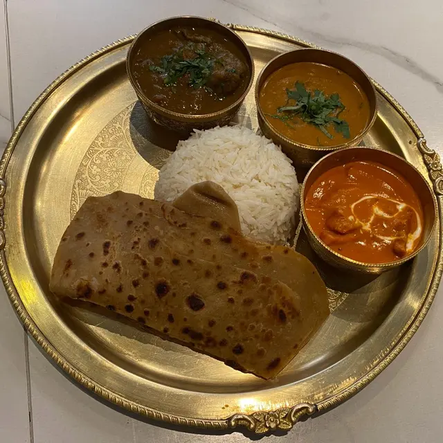 店內一直充斥著很香的咖哩味,所以他們的印度咖哩是必點的。一個金屬圓盤內盛著三款不同的咖哩,配上印度米飯及薄餅來食,很傳統的。當中牛咖哩是比較微辣惹味,中間的鷹咀豆咖哩是素咖哩,而咖哩雞則比較重奶油,不辣的。
