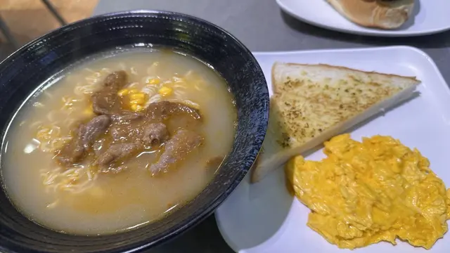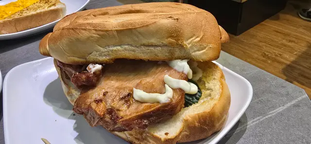 食慾未止,我哋再加碼招牌厚豬扒配醬脆豬包同沙嗲牛肉麵。
