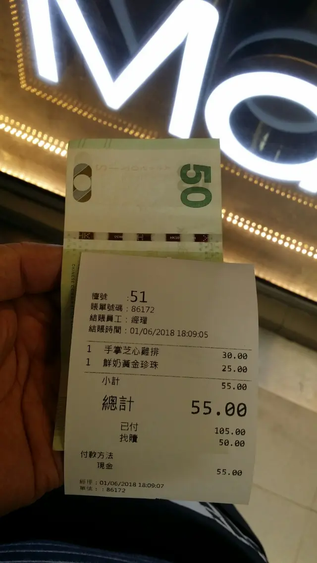 由於「旺角中心」商場通道實際的面積也稱不上算是寛敞闊落,所以我在「魔法雞排」付款購票後,還是需要不斷在人來人往的「旺角中心」通道內等候,直至飲品「鮮奶黃金珍珠」率先完成為止。