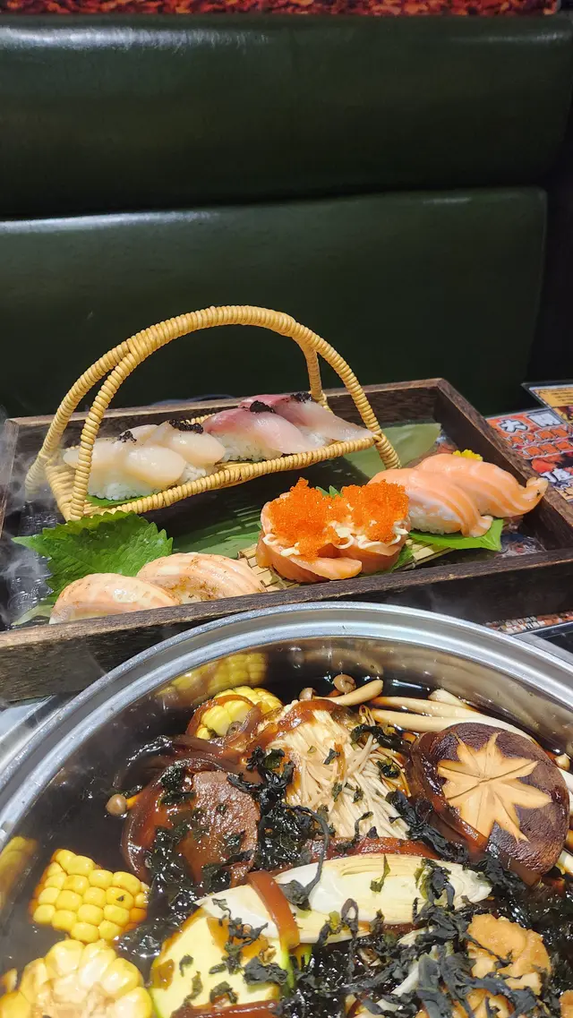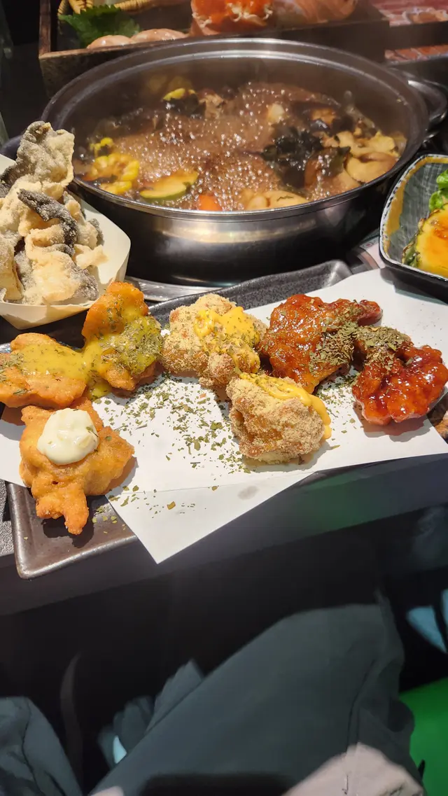 邊爐方面:壽喜燒湯底味道濃烈,十分濃縮、完全唔使點醬,炸魚皮香口,估唔到嘅係美國肥牛,如此有肉味,仲要唔韌,簡直係意料之外。
