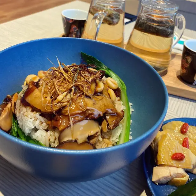 火薰玉蓮鴨子飯(套餐$178)鴨肉為清代皇帝的主菜,被視為補益之品,菜式以火薰玉蓮鴨子和香氣四溢的蔥油飯為主,肉質較有嚼勁,帶有獨特煙燻風味。