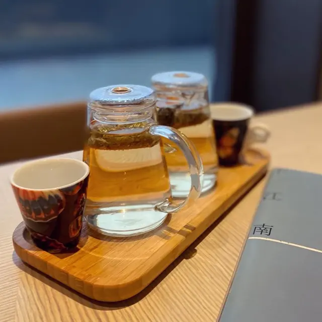 飲品容器十分精緻,龍井茶清新柔和,高山烏龍茶口感順滑更甘甜,飯後一杯配甜點,休閒又放鬆!