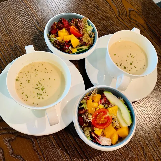 食物方面,每個set都有餐湯、沙律、主菜同餐飲。餐湯同沙律都整得好認真!