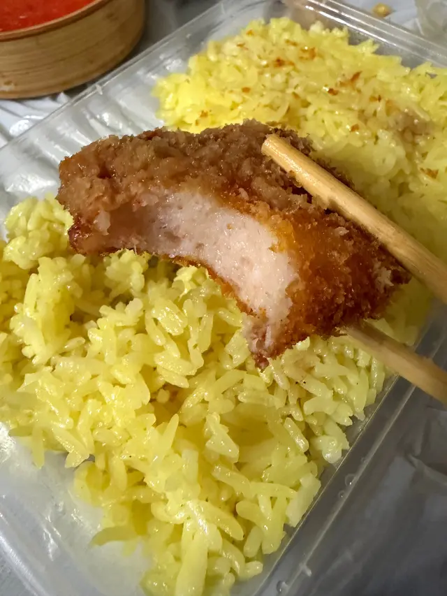 以五花肉片與椰菜快炒,肉片焦香帶微脆,椰菜爽口清甜,帶有些少辣味,十分餸飯