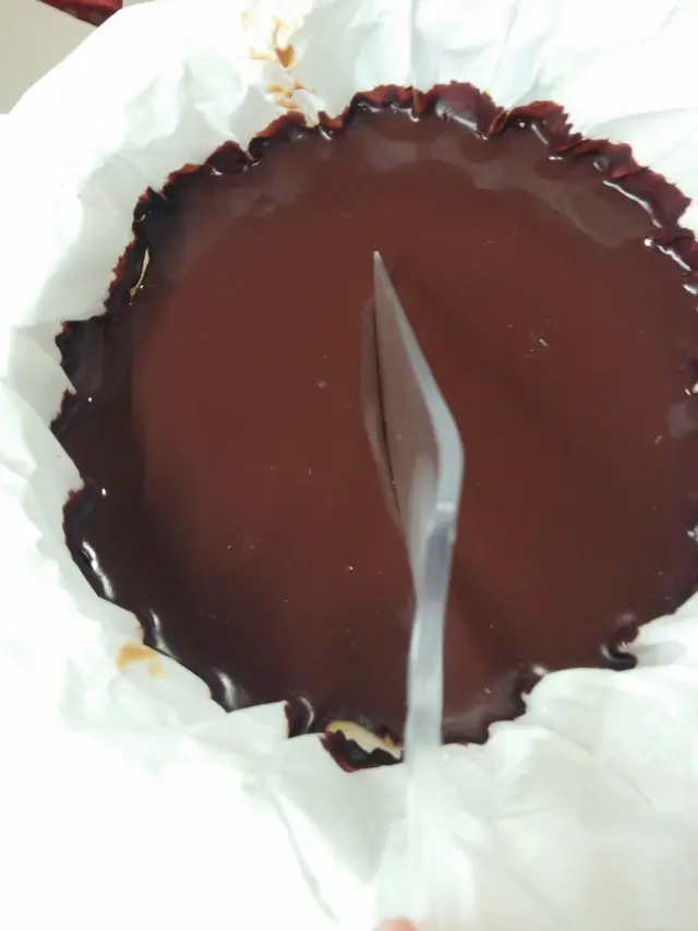 店員說放進雪櫃解凍10-15分鐘,但我最後解凍了半小時。切蛋糕時朱古力有點像啫喱彈彈的,內裡的芝士開始慢慢流出來,芝士味特濃,朱古力加上溶心芝士,有點膩,有點甜,但好滿足,很開心。因為可以一次吃我最愛的朱古力及芝士!xd
