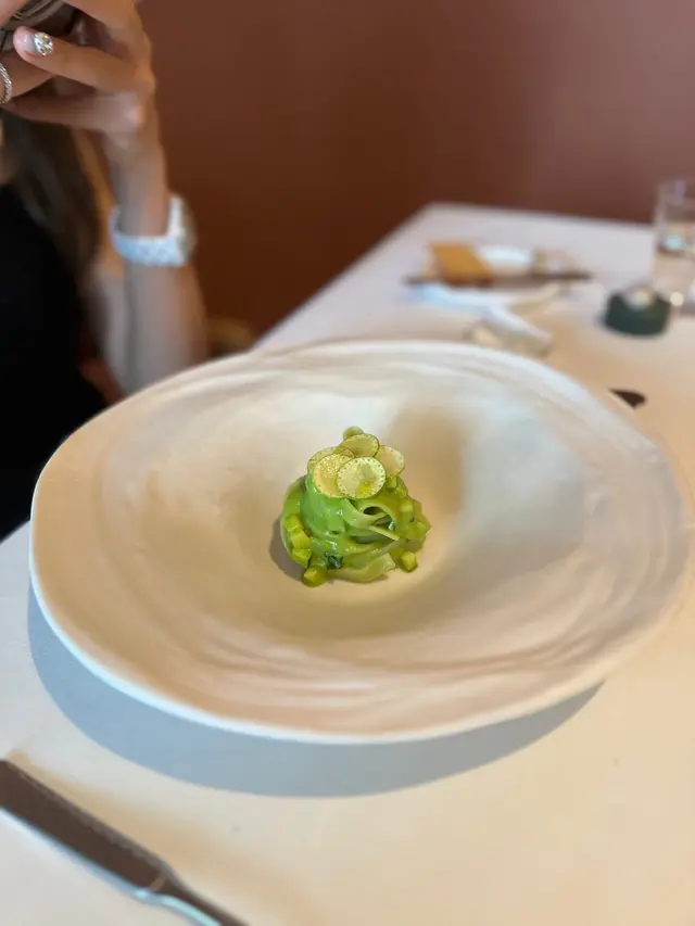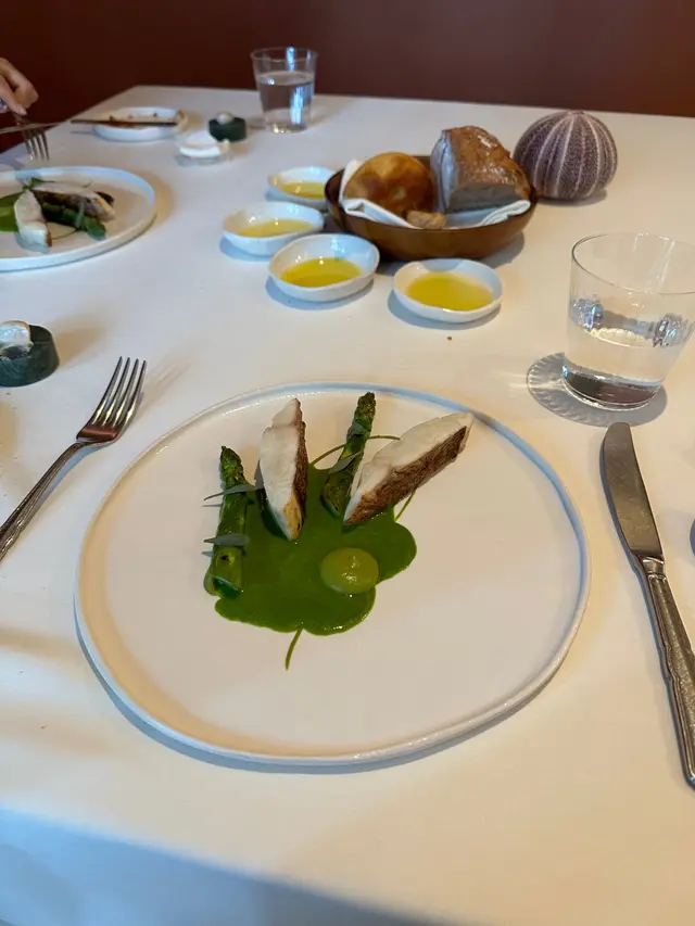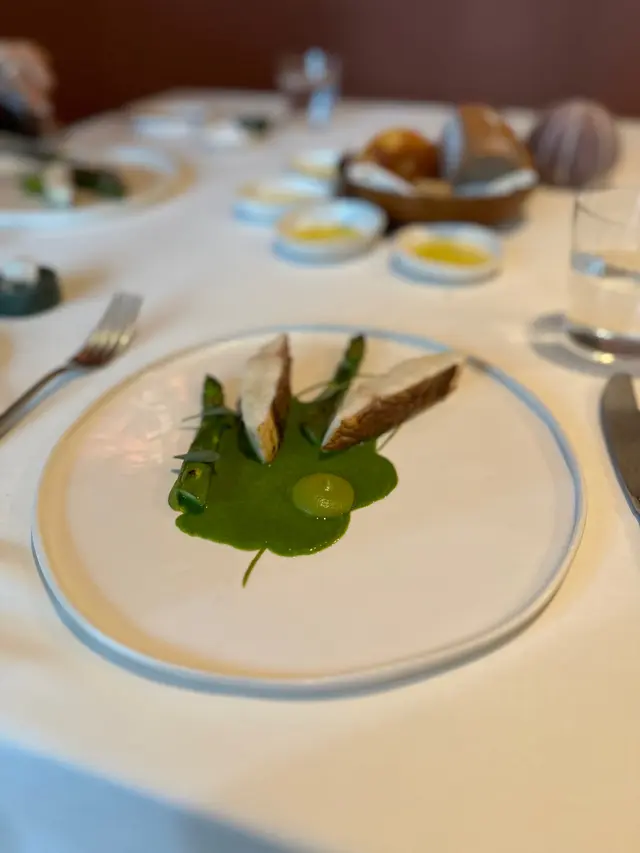 A trio of delights, recommended to start from lightest to richest. The Spring Pea tartlet is extremely fresh and crunchy, minimal seasoning so you really get that strong grassy yet sweet pea taste. Followed by a rich eggplant puree in this cracking shell topped with tomato jelly, fancy. Ended this little journey with a dual egg tart; egg salad on the bottom and salmon roe on top, umami! However, the most spectacular thing this small endeavor had was the opaque liquid they gave at the end to cleanse our palette, this liquid only contains cucumber and green apple, and when I say it is the most delicious liquid I have ever had. So rich and sweet but had savoury undertones and I was so close to asking for a glass of this but embarrassment got the best of me.