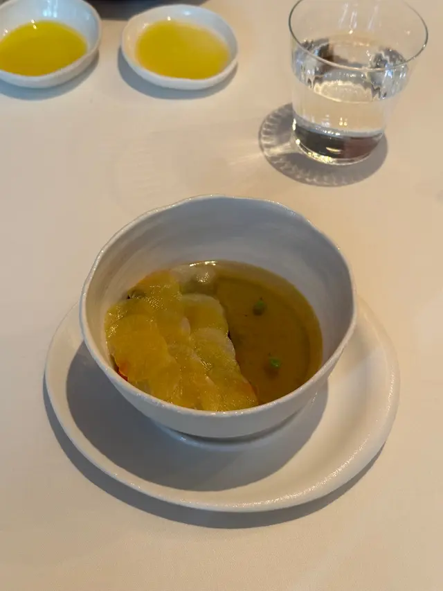 The second was perhaps the most memorable and delicious course; their signature minESTROne. There was a whole garden on my plate from root vegetables such as kohlrabi and carrot, to cruciferous plants such as broccoli and romesco. And the amazing thing was that everything was perfectly cooked and bite-sized so eating was an ease! Hiding under this garden was a parsley custard aka a steamed egg which was silky and a great accompaniment to the vegetables. The vegetable consume poured on top reminded me of the insanely delicious cucumber water from before as this consume was rich and deceptively flavorful given its clarity. Really really delicious and highly recommend.