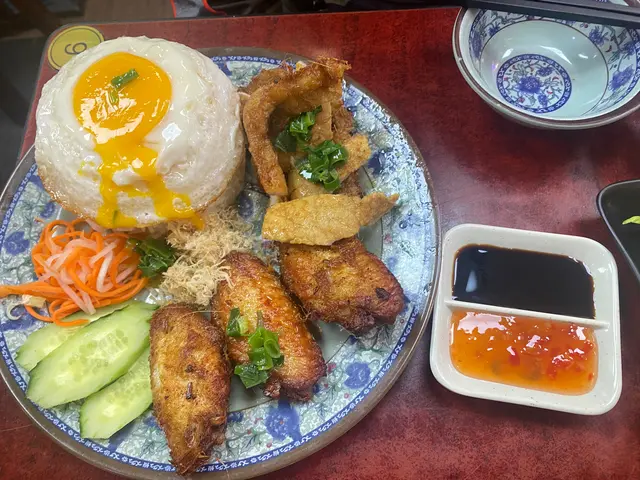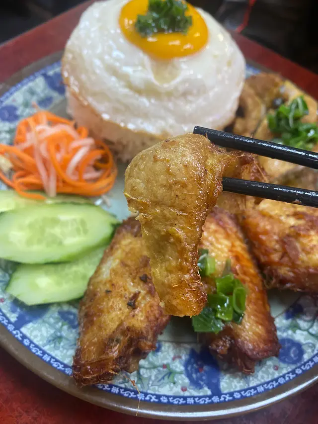 呢個飯真係好抵食,大大碟,有四隻香茅雞翼、一個太陽蛋、一份香茅豬扒,每樣都勁香口好好送飯,雞翼脹卜卜,香茅味十足,豬扒都係,充滿香茅味,碎上,方便客人進食😽🫰🏻仲有青瓜、蘿蔔絲同肉鬆