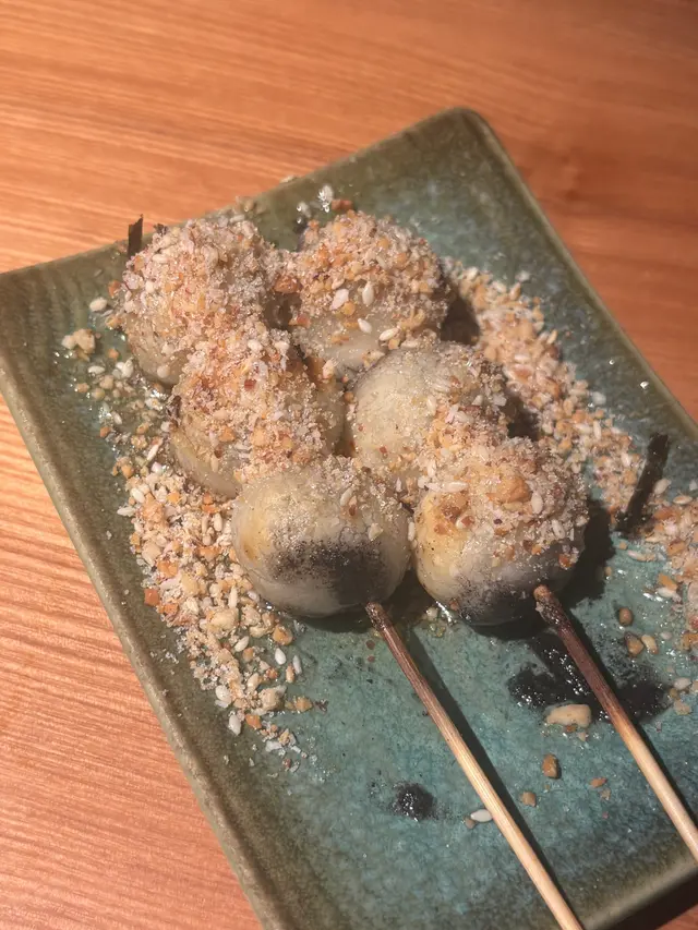 不得不讚這間燒烤堂的手藝不錯,全部燒到金黃色,火候拿捏得剛剛好ദ്ദി ·͜·原塊雞皮比手掌還要大,非常酥脆,比一般雞皮串更特別!牛舌芯口感爽口彈牙,鹽燒蘆筍清甜,孜然蒜芯特製醬汁好惹味,茄子有大量蒜蓉超好食♡甜品的糖不甩燒芝麻湯丸有驚喜,全部都好出色,絕對可以encore!