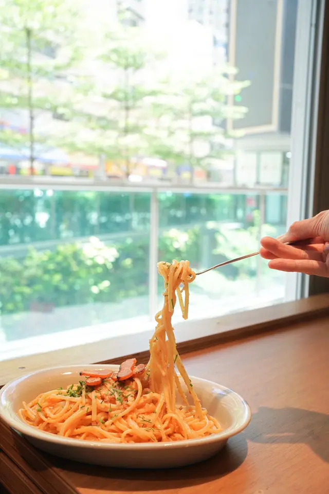 週末應約同 foodie 姐姐哥哥一齊去探新店,早啲到就唔洗排隊。 奴才喜歡烏魚子所以叫咗個烏魚子提魚意大利麵 🍝,大少少鹹香好好食👍🏻偷心嘅佢話如果烏魚子刺身加多兩片就好啦。 全日早餐係誠意之選,呼應日式主題,用上迷你飯團 🍙🍙,沙律超級新鮮仲有南瓜,粟米仔同翠玉瓜🎃🌽🥒,煙燻雞肉都出手闊綽,我有被餵食嘅機會🤤。