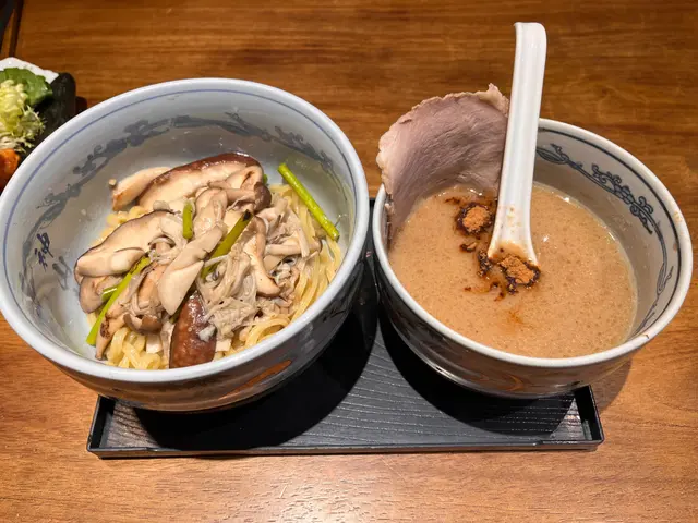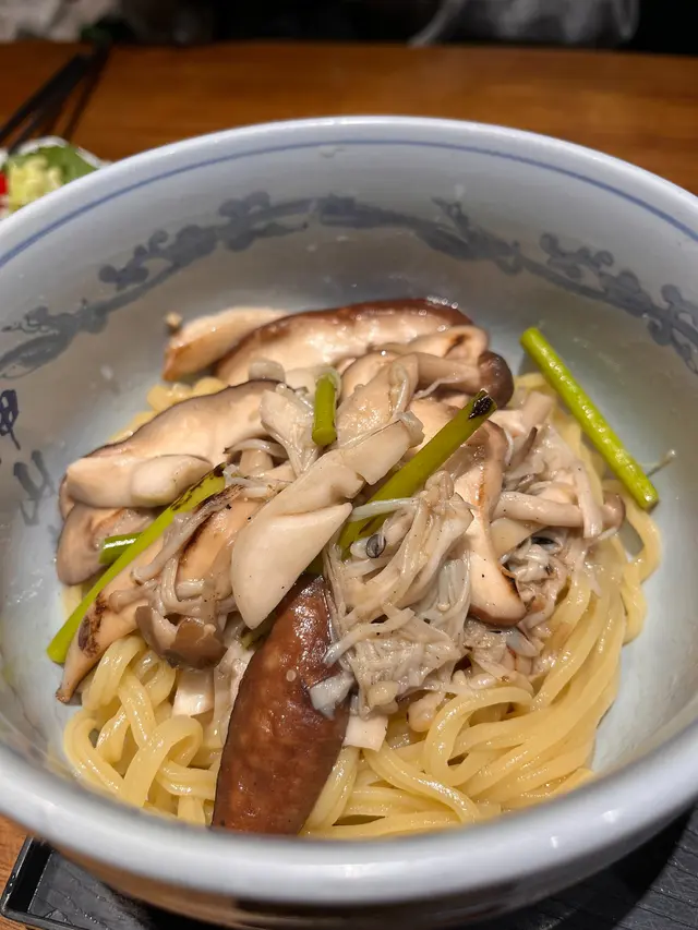 沾汁比起拉麵的湯底更為濃郁, 質地非常稠密, 配上帶有坑紋的拉麵, 很好掛汁。與預其的清爽不同, 這款主打菇菌類的沾汁麵居然非常重口味! 每一口都是滿滿的菇香, 非常好吃。