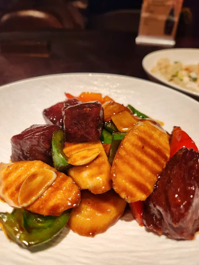 淮山爽脆,牛肉入味,配上彩椒及鵝肝,是一個很好拌飯的餸菜。