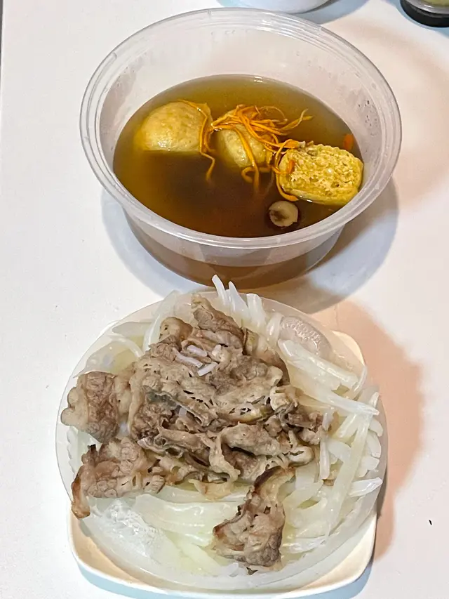 肥牛銀針粉配藥膳養生雞湯味道層次豐富,融合了肉香、藥膳清甜和銀針粉的滑嫩彈性,是一道兼具滋補與美味的組合。