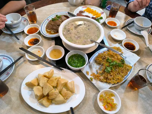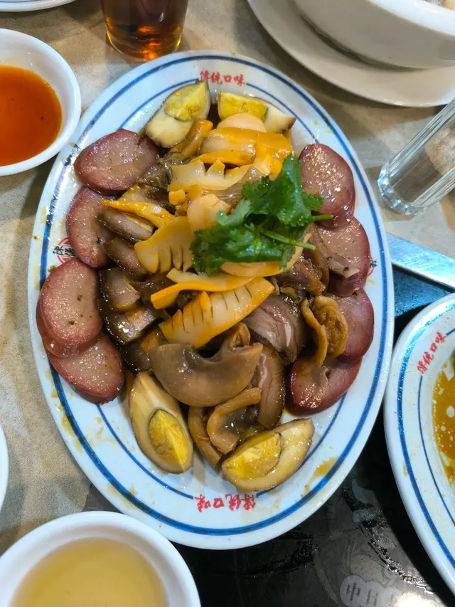 雖然是平日的星期四晚(而且那晚一直下雨),店舖都多人,一早預約不用等位. 潮州菜一般例牌必選“蠔仔粥,炸蠔餅,鹵水拼盤,鹵水鵝片,炸豆腐(潮式浮豆腐). 除咗潮式菜式也有其他特別大排檔菜式.我們選了炸大腸.