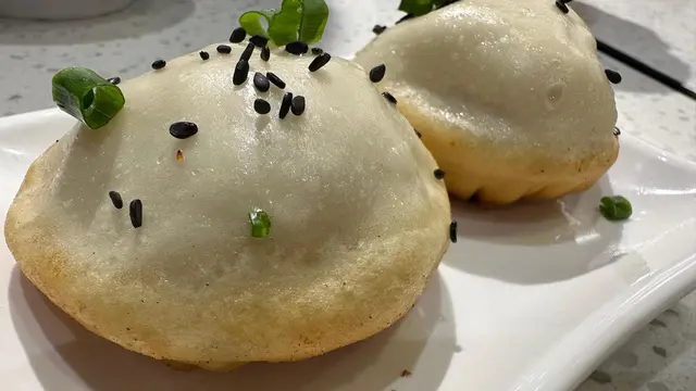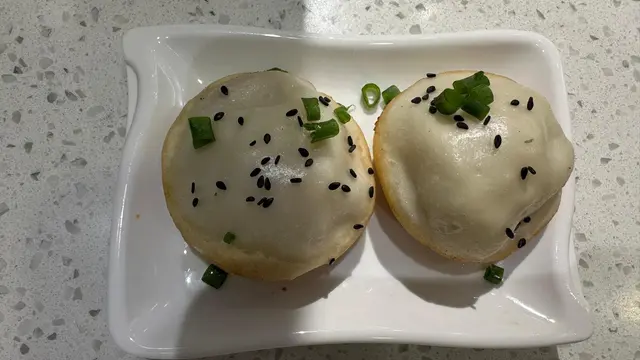 另一款芝士拉絲香煎包真係邪惡到爆!外層煎到金黃香脆,面頭灑咗啲白芝麻,一撕開真係不得了~ 芝士多到拉絲拉到成尺長!芝士味濃郁帶鹹香,配埋鬆軟嘅包身同香脆底面,口感層次豐富到呢!雖然知道熱量爆燈,但真係忍唔住食咗兩大件!