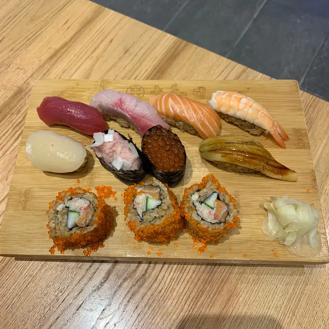 同樣包含配湯&蒸蛋,這個午市壽司套餐有八件壽司、三件卷物。同樣地,每件壽司都是用赤醋米飯,所以很難得!壽司方面有三文魚壽司、吞拿魚壽司、帆立貝壽司、鰻魚壽司、吞拿魚蓉壽司等,每件都有食材的鮮味,而加洲卷份量亦很足料,性價比超高。☺️