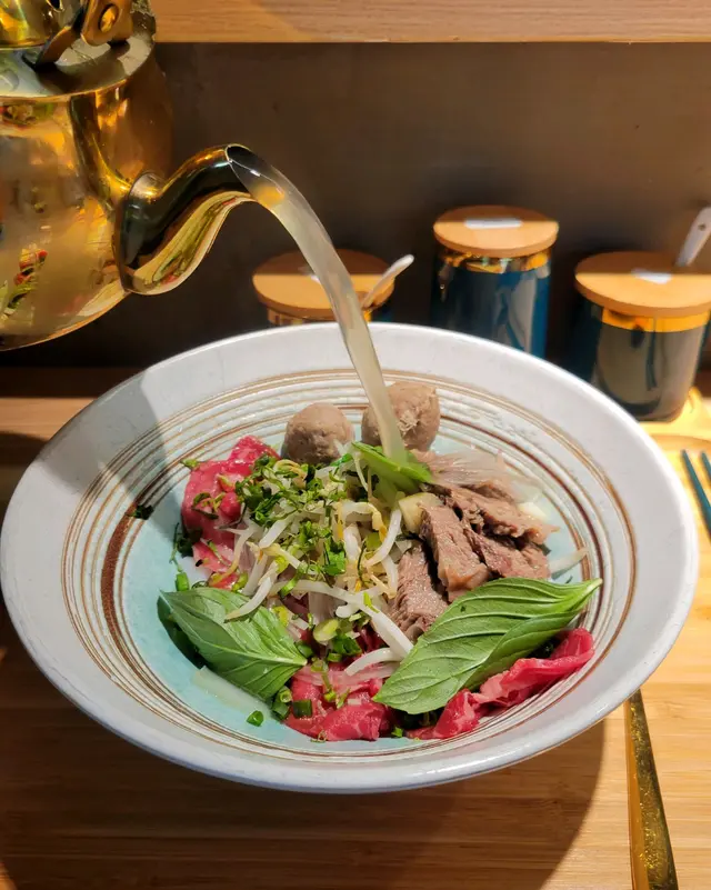 有牛頸脊 、牛坑腩(濃郁重牛味🫶)同鮮牛丸(好彈牙),手工河粉滑溜,店員上菜後先在河上淋上熱辣辣既牛肉湯,將牛頸脊(牛肉片)煮到啱啱好熟,保持嫩滑。