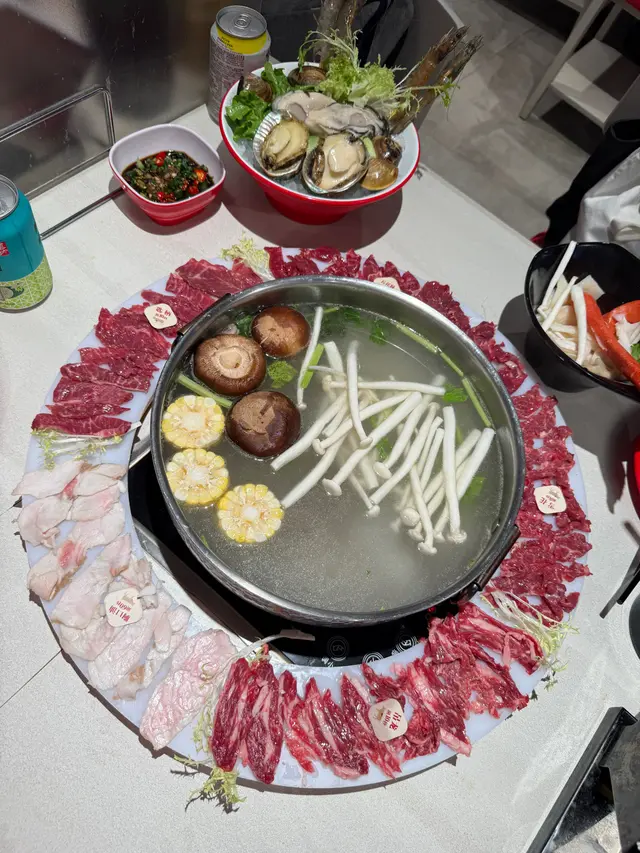 ✅ 自助區超豐富:美國牛板腱、黑豚肉、手工墨魚滑、脆肉鯇