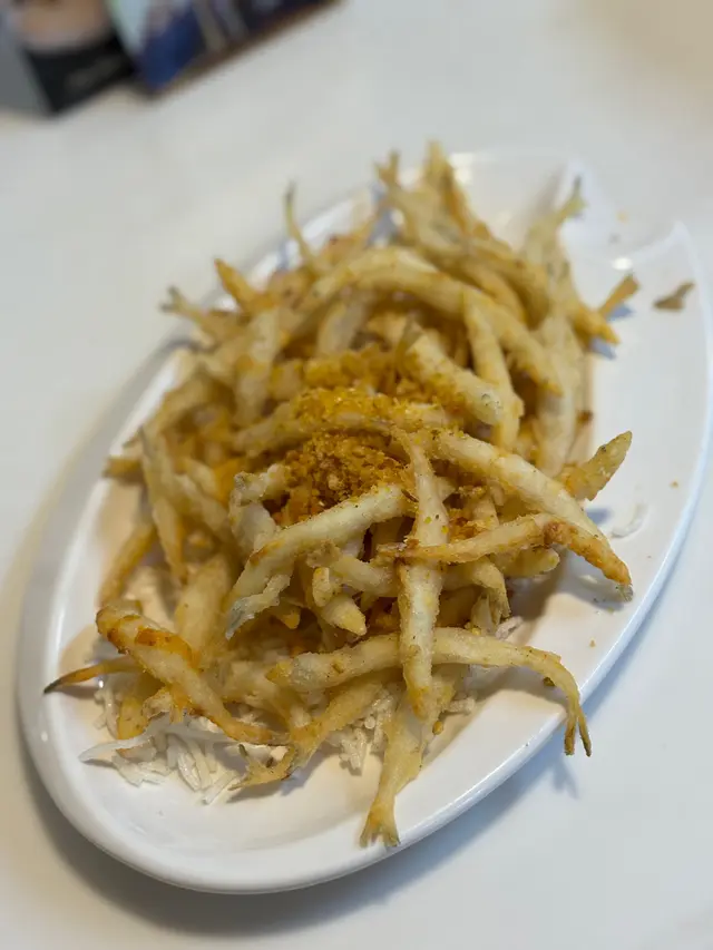 白飯魚大條,用椒鹽烹製,香口又美味。