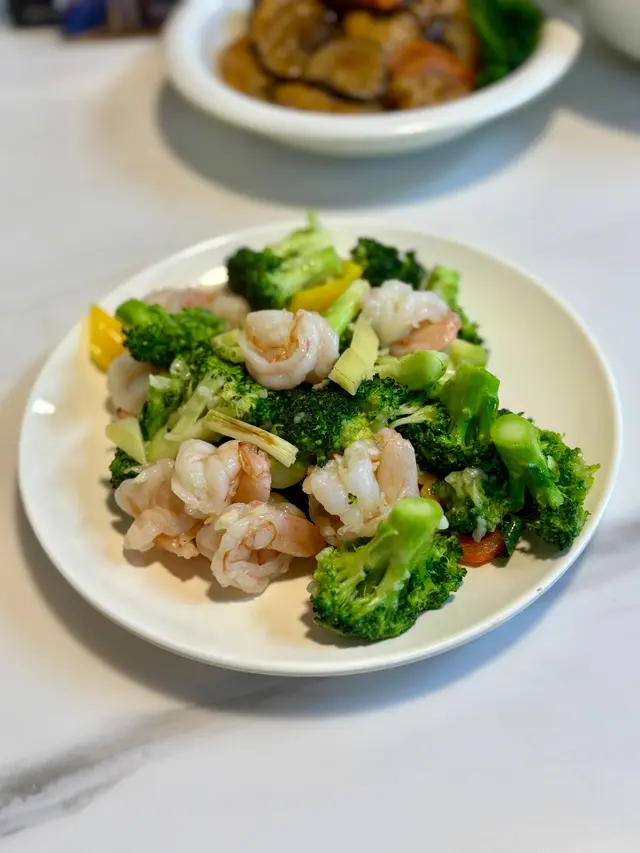 蝦球彈牙,西蘭花翠綠新鮮,加上薑片調味,十分可口。