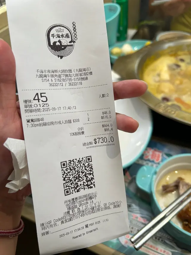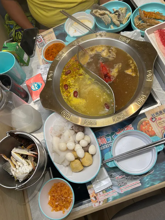 新鮮海鮮任撈任食😋 食足2小時! sumsumpiggy等级42025-09-26 关注 千海水產海鮮火鍋放題真係海鮮火鍋迷嘅天堂!呢間位於淘大商場3期2樓嘅餐廳最大賣點係自助撈海鮮區,海鮮係活生生擺放係魚池入面,任你無限量即撈即煮。佢哋嘅補貨速度非常之快,保持海鮮新鮮又生猛,無論係大蝦、花蟹、鮑魚定係多款貝類都應有盡有,唔怕拎唔到你鍾意嗰款。而且店員好勤力,會不斷撈走啲唔新鮮嘅海鮮,保障食客安心食用。除此之外,千海水產仲有多款湯底可以揀,包括滋補嘅金湯花膠雞鍋、椰子雞湯、秘製麻辣鍋、蕃茄豬骨鍋等等,湯底味道濃郁又足料,海鮮落湯更添鮮味。自助區仲有豐富多樣嘅火鍋配料,包括各種丸類、豆腐菇菌同蔬菜,選擇真係多到眼花撩亂。就連甜品、雪糕同飲品都係任食任飲,仲有貴價haagen daz同movenpick,真係食到超滿足。價錢方面,晚市兩小時大約$298起,性價比絕對高得令人難忘。特別適合一班朋友或者家庭嚟聚餐,既可以享受到多元化嘅新鮮海鮮,又可以食到盡,真係好抵食又好玩。21以上食记乃用户个人意见 , 并不代表OpenRice之观点。赞好分享千海水產海鮮火鍋放題 https://s.openrice.com/QrLT0lfTU00检举 张贴 评分5味道5环境5服务5卫生5抵食用餐途径堂食