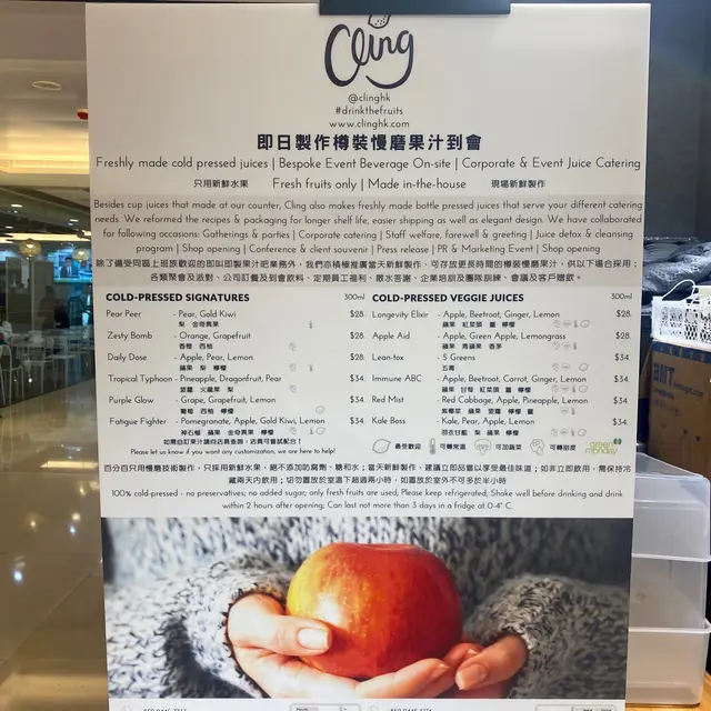 行過見到呢間黃店Cling Juicery專賣新鮮果汁飲品🍹,即叫即場係你面前整,仲無防腐劑、糖同水👍🏼,絕對係健康之選
