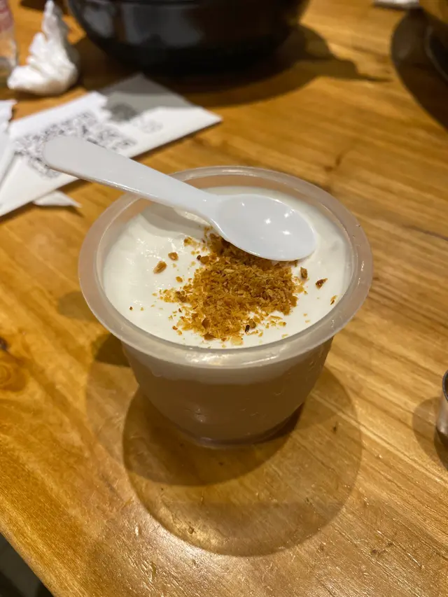 最後每人有一客甜品,有少少似泰式椰汁糕 一層類似椰漿在面,底下是清甜椰青水味大菜糕,為富嘅一餐作結。